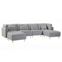 128 in. Slope Arm 4-Piece U-Shaped Polyester Blend Modern Sectional Sofa in Black by Z-joyee