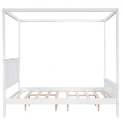 Wood White Queen Size Canopy Platform Bed with Headboard by Z-joyee