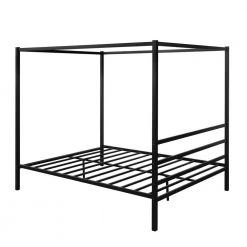 Canopy Black Queen Size Platform Bed with Built-in Headboard by Z-joyee