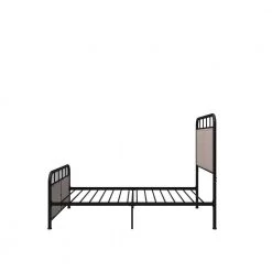 Metal Black Twin Size Platform Bed with Fabric Headboard by Z-joyee