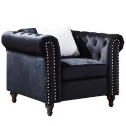 38 in. Round Arm Velvet Mid-Century Modern Straight Sofa in Black by Z-joyee