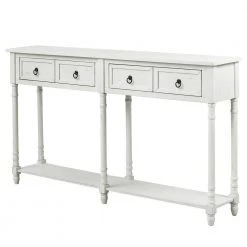 60 in. Navy Standard Rectangle Wood Console Table with 4-Storage Drawers and Bottom Shelf by Z-joyee