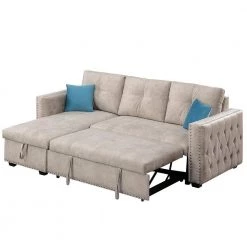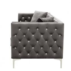 Living Room 91 in. W Gray Velvet Square Arm 3-Seater L-Shaped Modern Sectional Sofa by Z-joyee