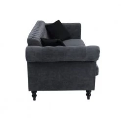 38 in. Round Arm Velvet Mid-Century Modern Straight Sofa in Black by Z-joyee