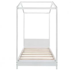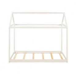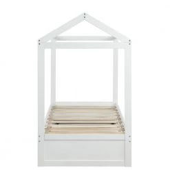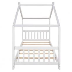 Wood White Twin Size House Platform Bed with Headboard by Z-joyee