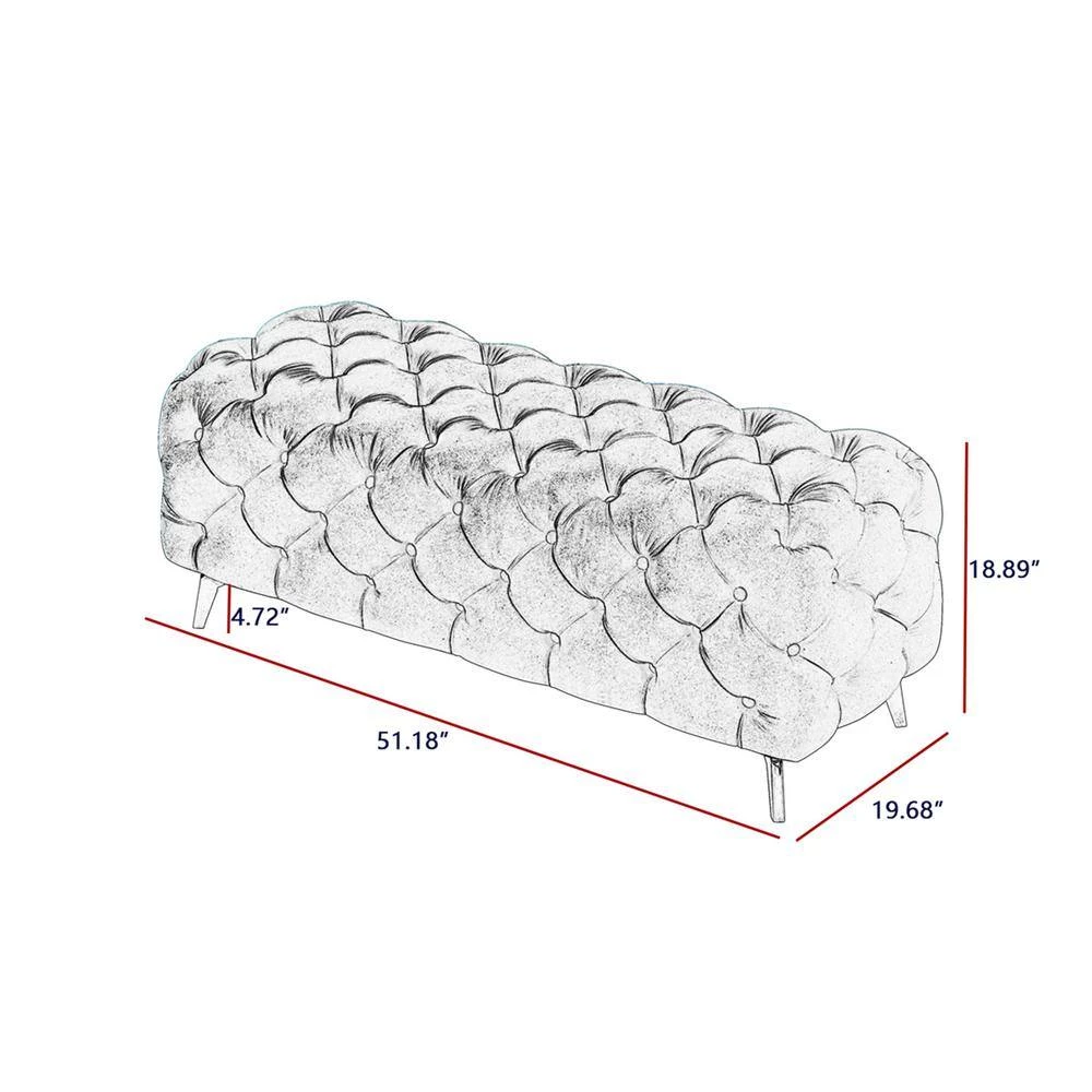 The surface of our ottoman is crafted with comfortable velvet, which is soft in texture and offers you a relaxing feeling. It’s very easy to care and will not wrinkle or fade .Seat cushions with high-density sponge and confortable velvet, it makes this bench more comfortable to sit on.The button-tufted ottoman bench wrapped in soft velvet offers ultimate comfort. It can fit into any room: bedroom, living room, dining room, entryway, also blends with a variety of decor.