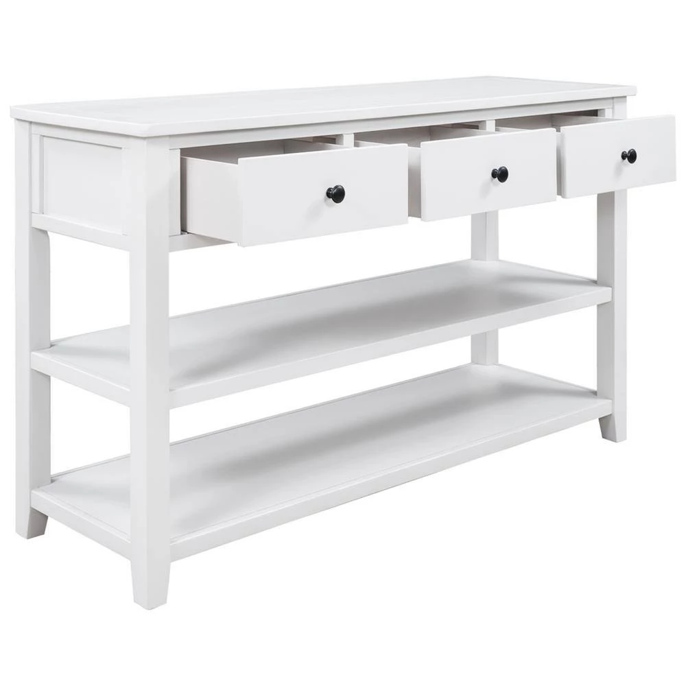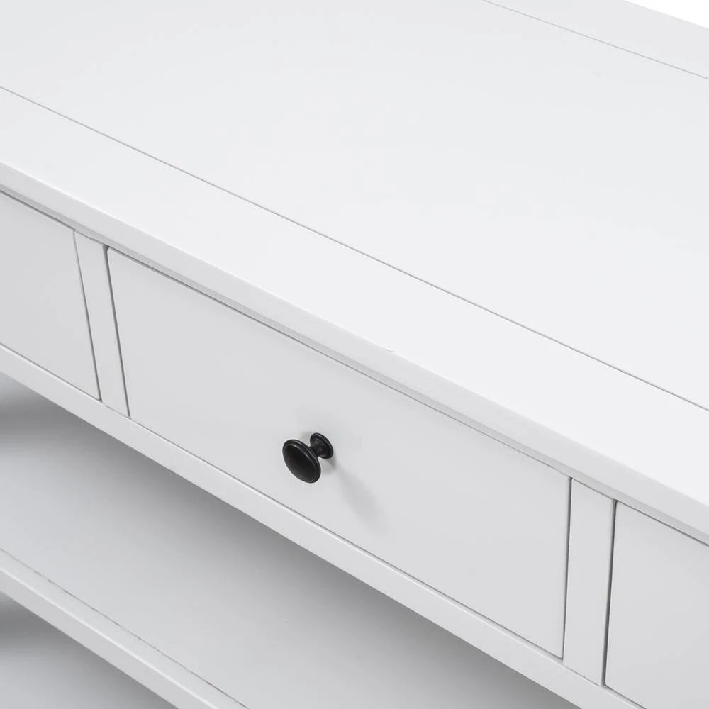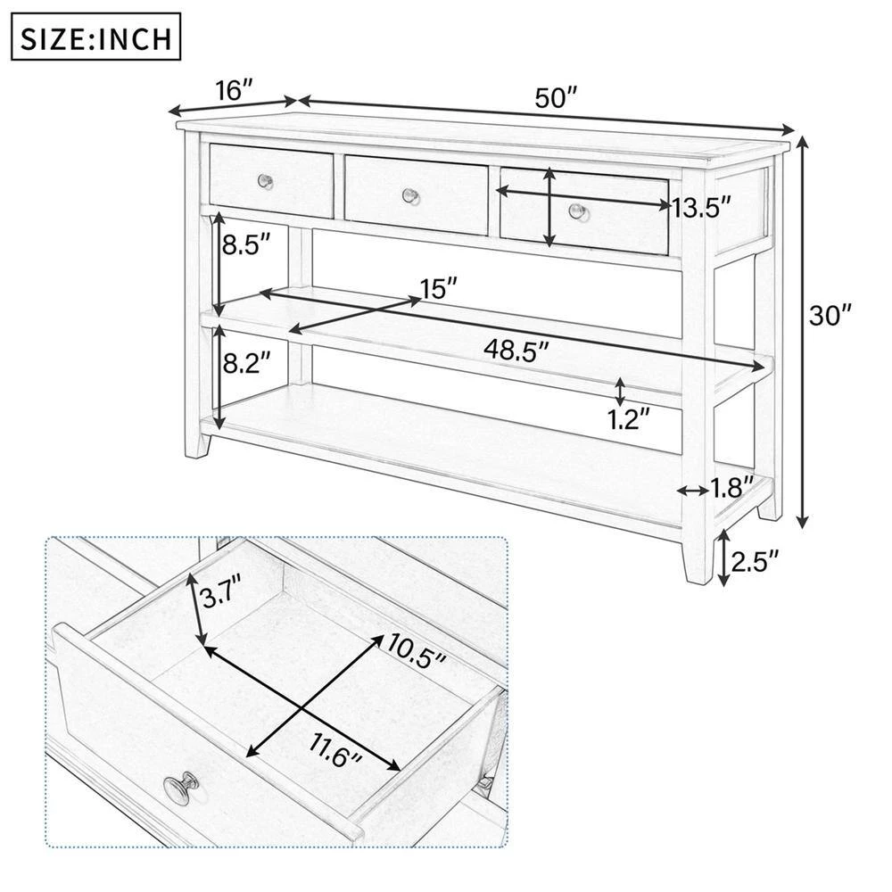This classic design console table with simple clean lines and circular handle in traditional shape brings mid-century atmosphere to your home. The open design is also fully aligned with the retro aesthetic and practical usage. The neat structure of this console table highlights high-end and dignified. The classic rectangular frame reflects rigorous and understated spirits. And this console table available in multiple colors. This style is a perfect fusion of retro and modern, and it can be a wonderful addition furniture to your house.