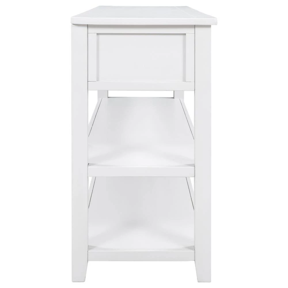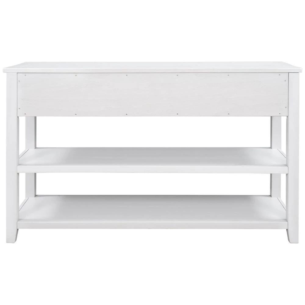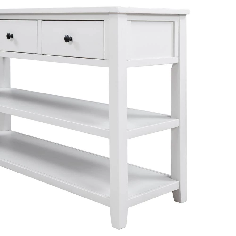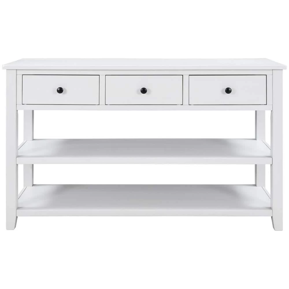 This classic design console table with simple clean lines and circular handle in traditional shape brings mid-century atmosphere to your home. The open design is also fully aligned with the retro aesthetic and practical usage. The neat structure of this console table highlights high-end and dignified. The classic rectangular frame reflects rigorous and understated spirits. And this console table available in multiple colors. This style is a perfect fusion of retro and modern, and it can be a wonderful addition furniture to your house.