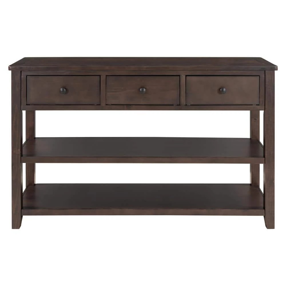 - This retro and classic design console table is manufactured with solid pine wood and MDF board. The solid pine wood frame and legs will guarantee the stability and durability of this console table to allow it can be a perfect table suit for different scenario.