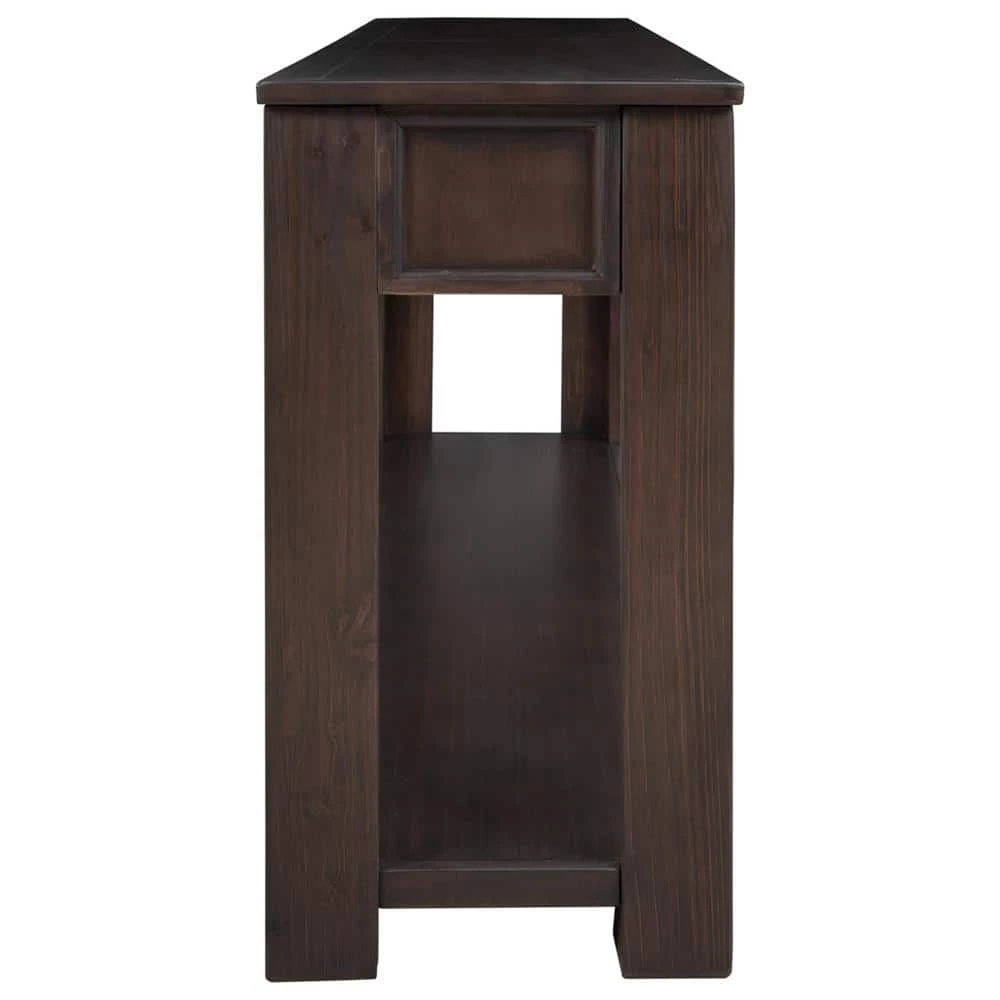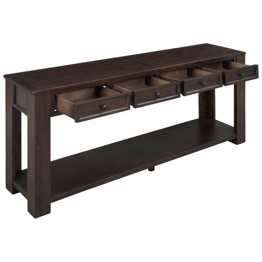 Classic accent table fits perfectly in any living room. What a stylish piece of console table set to elevate your living room or foyer entryway space.Solid wood frame and legs, weight limit of top:220 lbs, durable and sturdy use for years.63″Lx 14″Wx 30″H. The console table features with 4 drawers and a fixed lower shelf and long enough tabletop which provide enough storage space.Rectangular console table with clean lines , elegantly straight table legs exude a high-end, elegant feel.