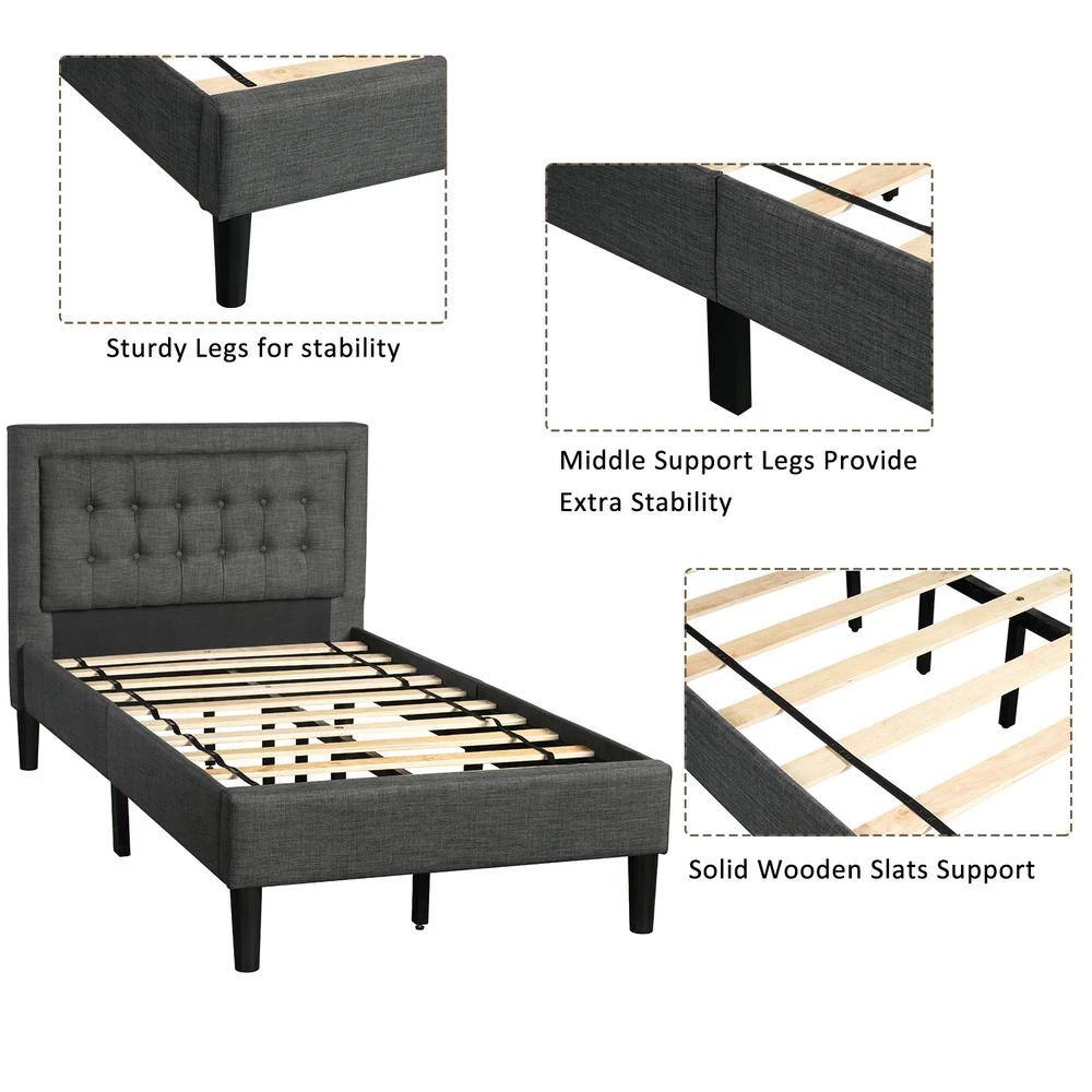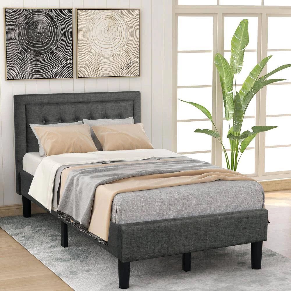 Add more support to your mattress and style to your bedroom.with this beautifully designed classic upholstered platform headboard and bed frame. urable wood slat foundation with sturdy center support can be used with mattress. No Box Spring Required, headboard, frame, and solid wood slats are included.
