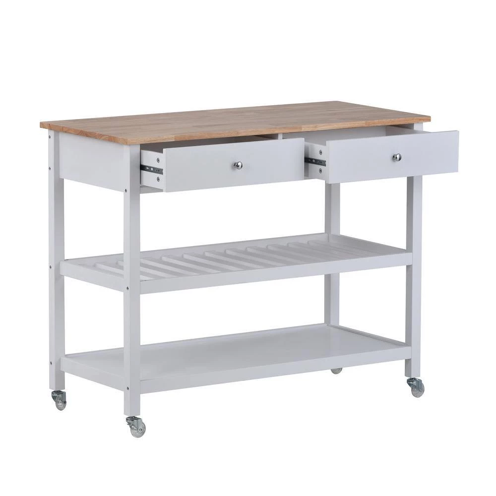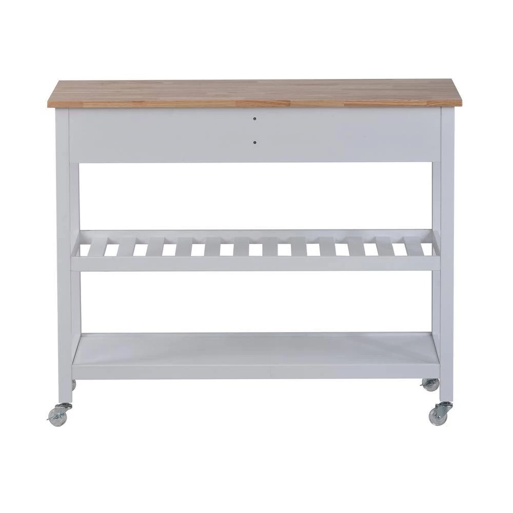 - This 3-tier rolling kitchen island is built in a rustic farmhouse style with bamboo wood and engineered wood, a stylish solid wood top and ample storage and shelving.