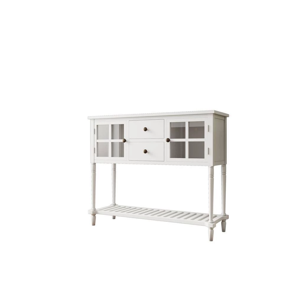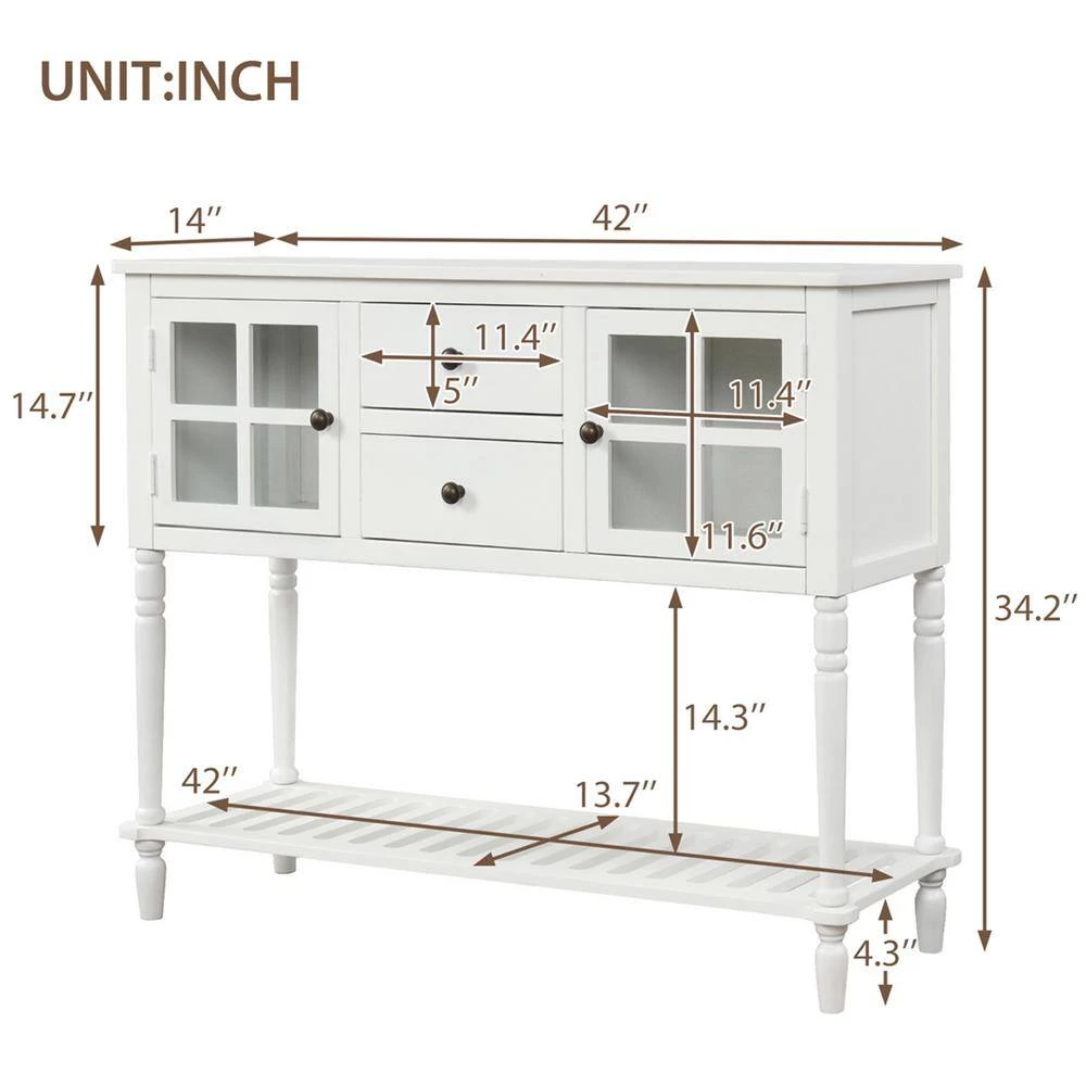 - Sideboard cabinet measurements: 42″ L x 14″ W x 34.2″ H. Easy assemble, simply attach the four base legs and bottom shelf.