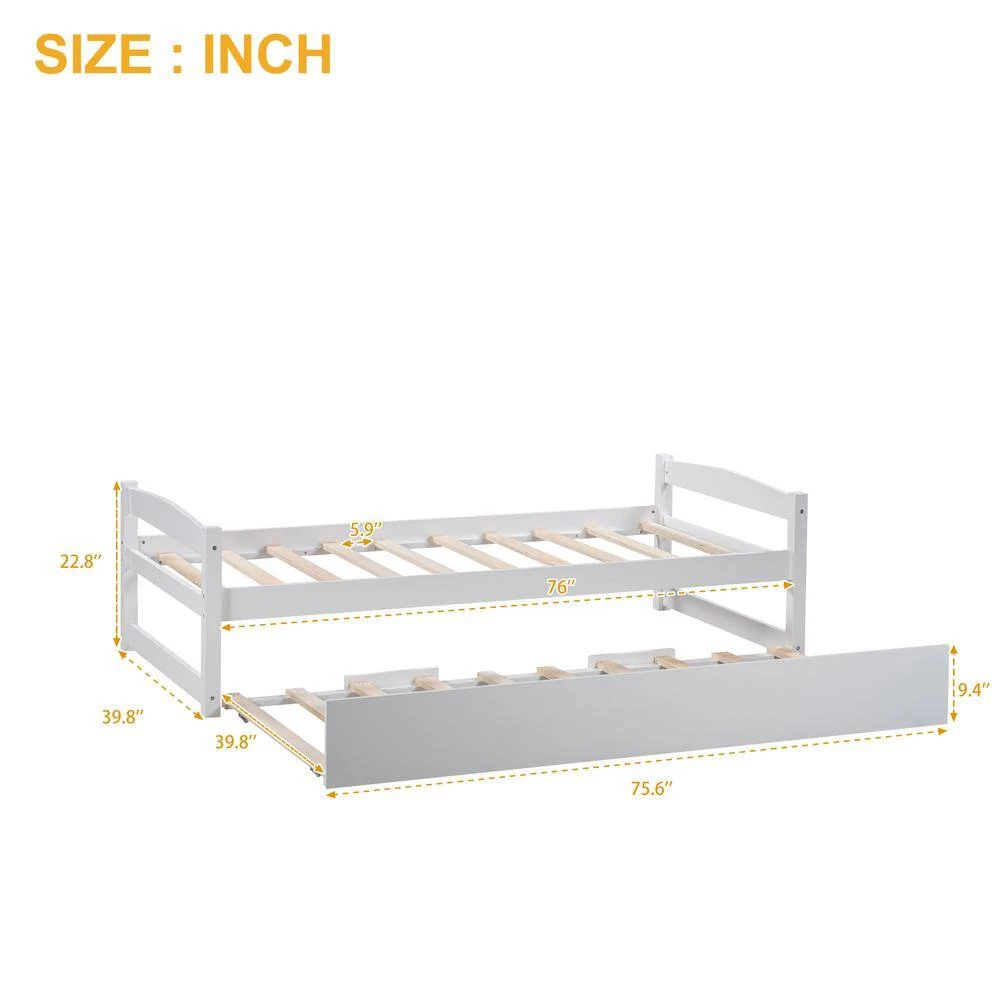 This decent daybed features a simple and clean design. Constructed of pine wood and high- quality MDF, this bed creates a stable and comfortable space for your family or overnight guests, and the included pull-out twin size trundle make it available for an extra sleepover. The simple and modern appearance makes it suitable for any room layout, it’s ideal for your bedroom, spare room or play room.