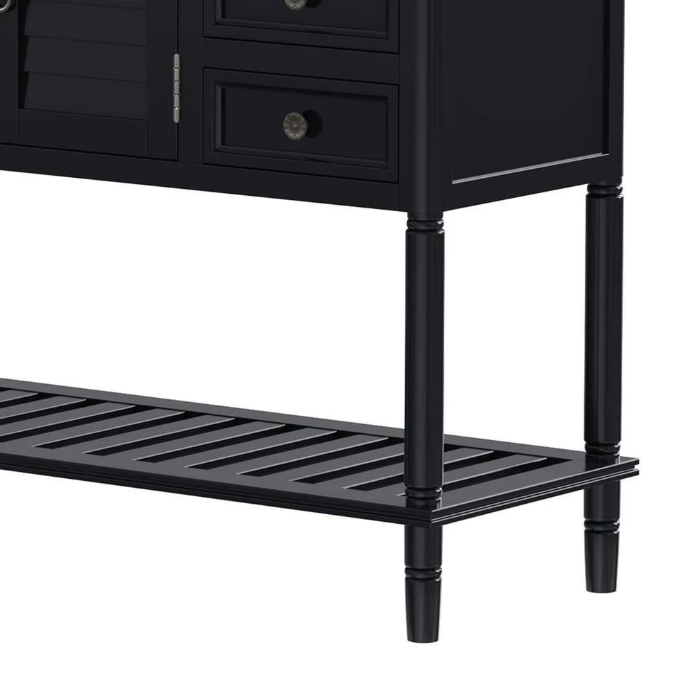 Effortlessly fill in that blank space in your home with this console table, designed to fit all of your needs and more. Crafted with a classic vintage appearance, this table comes complete with two front facing cabinet doors that open to reveal a spacious interior, perfect for stowing away your larger necessities and keeping them out of sight. The drawers minimize clutter, offering plenty of space to hold smaller items such as keys or mails while the spacious bottom shelf is the perfect place for storage baskets, shoes and more. Crafted with thick Pine and MDF wood slabs and accented with quality iron handles, this piece is manufactured for quality and exudes a high-end appeal that will leave your guests talking.