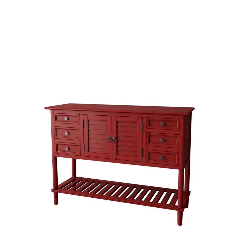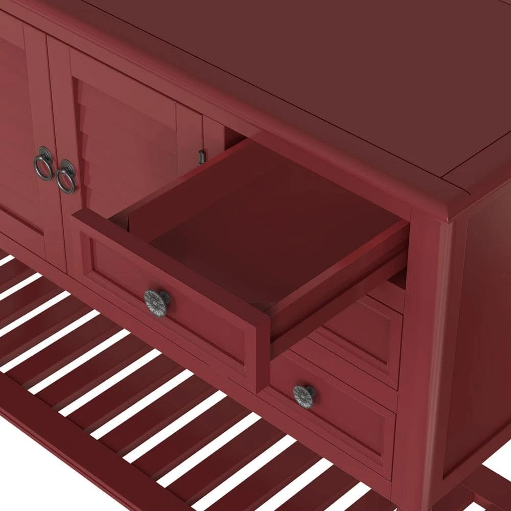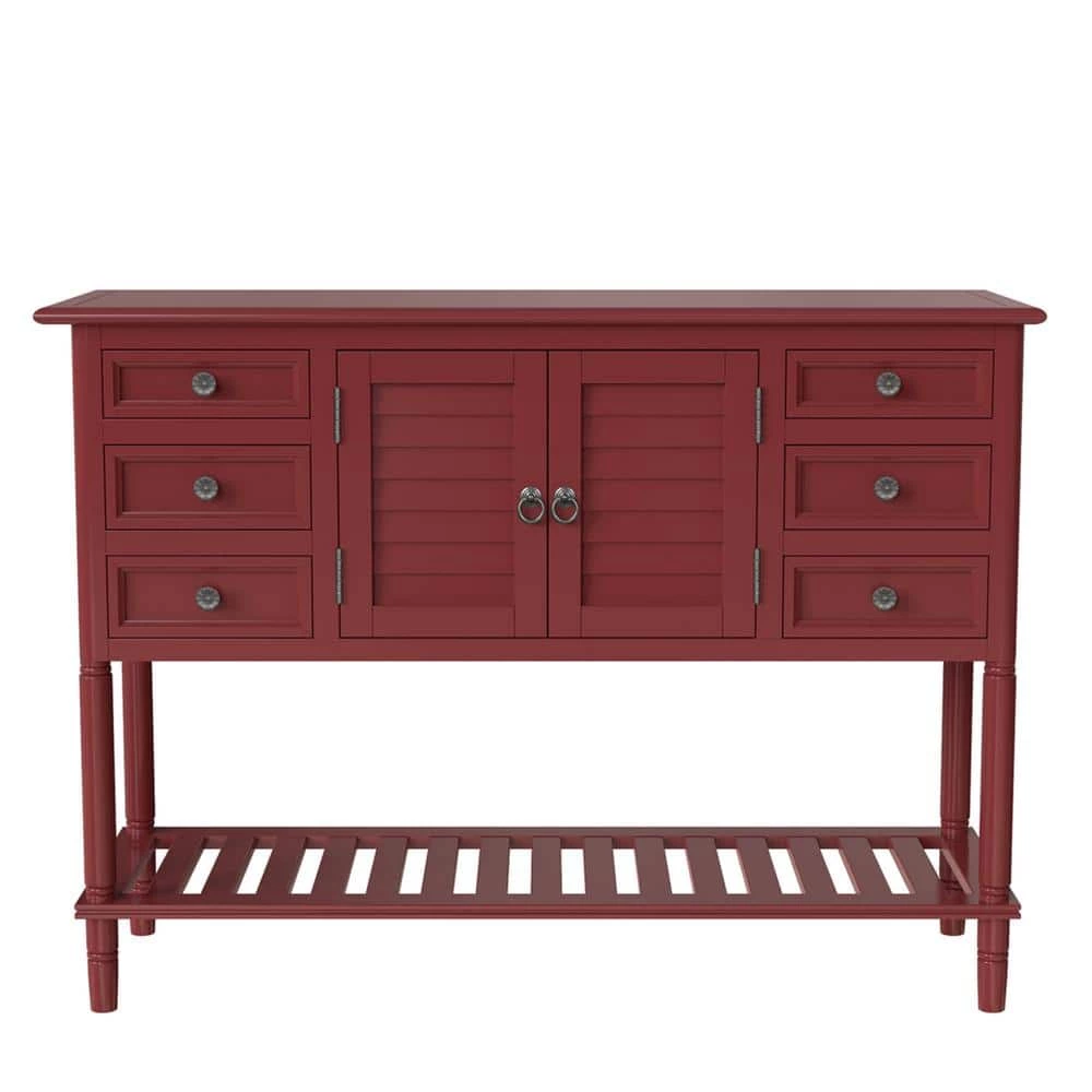 - With built in shelving ranging from the front double doors to the 6 drawers, users will have plenty of space to store their belongings and avoid letting clutter accumulate on the console table.