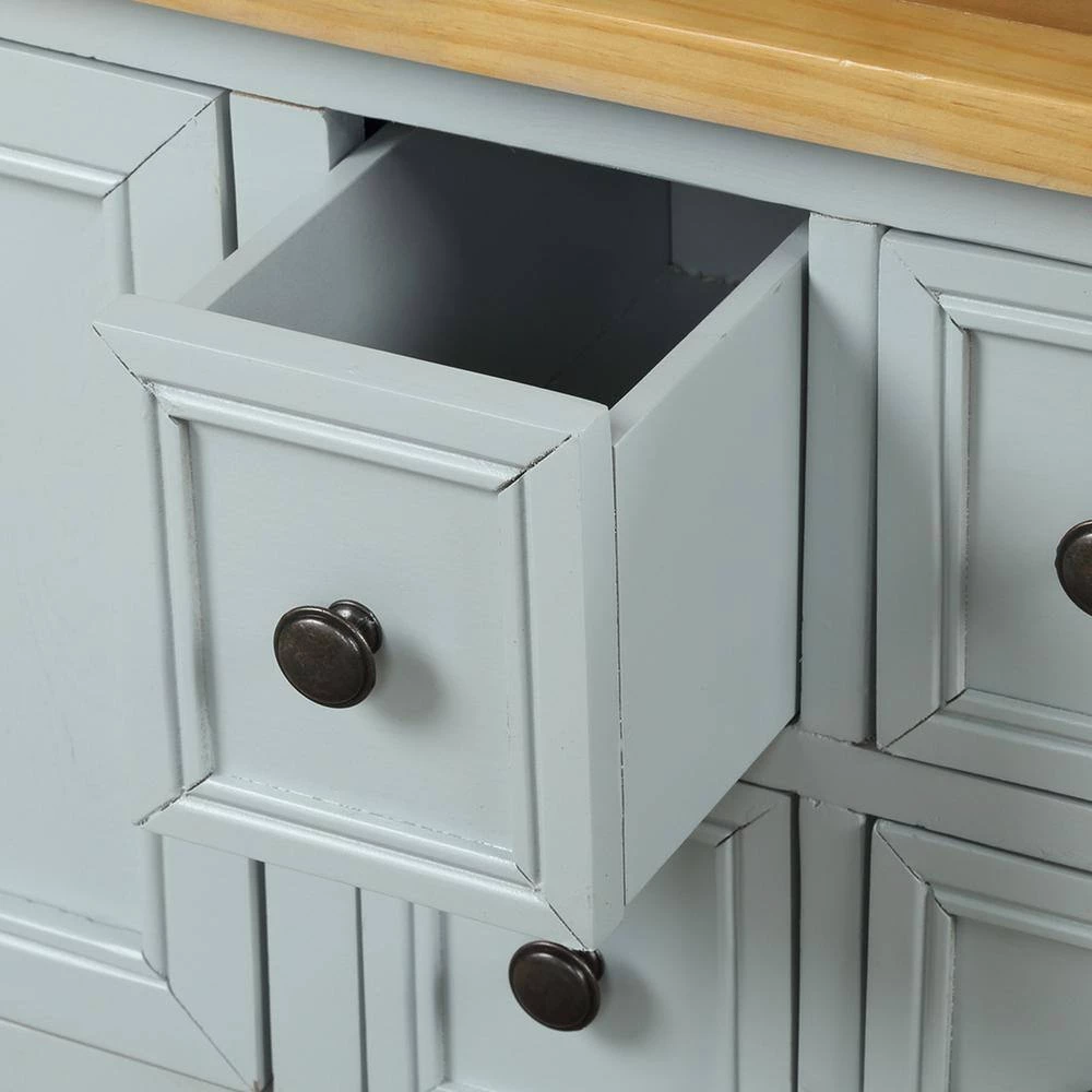 - Crafted of solid acacia mangium wood, the sideboard buffet provides enough storage for dishes, silverware, and glassware.