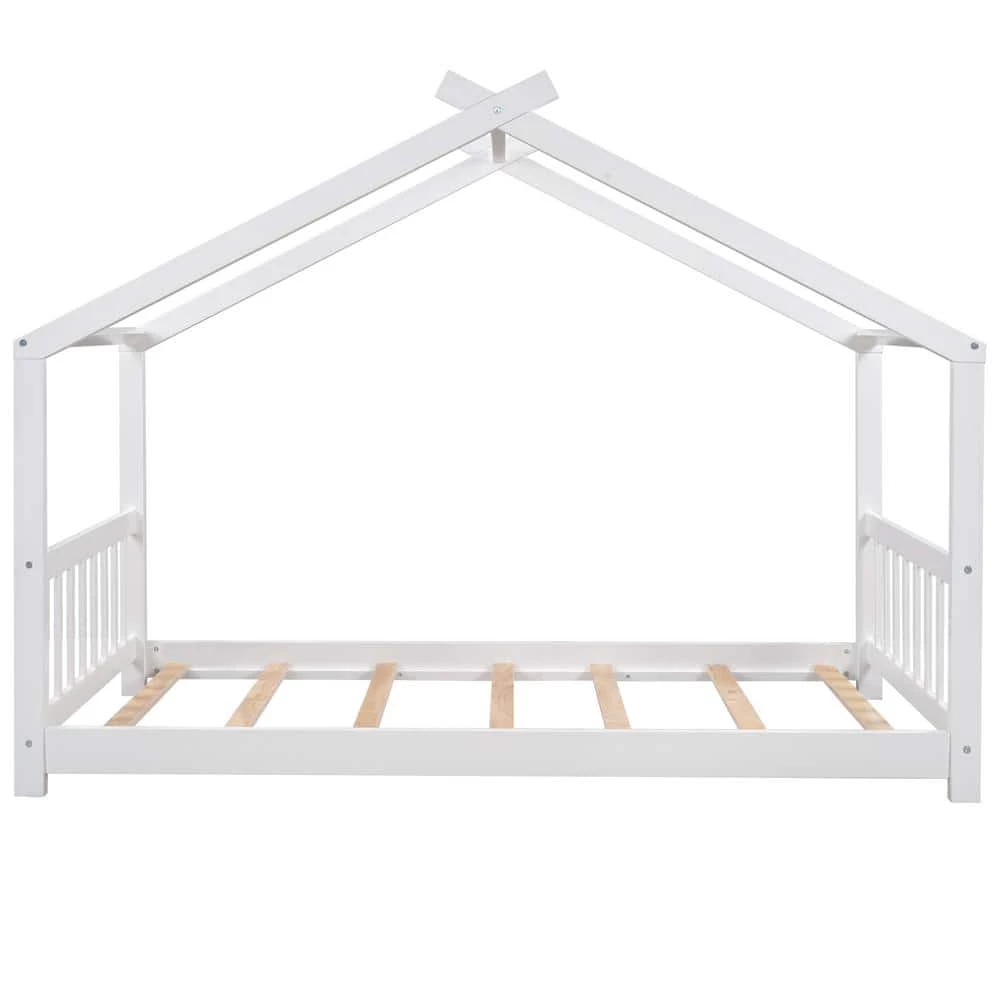 Wood White Twin Size House Platform Bed with Headboard by Z-joyee - Image 9
