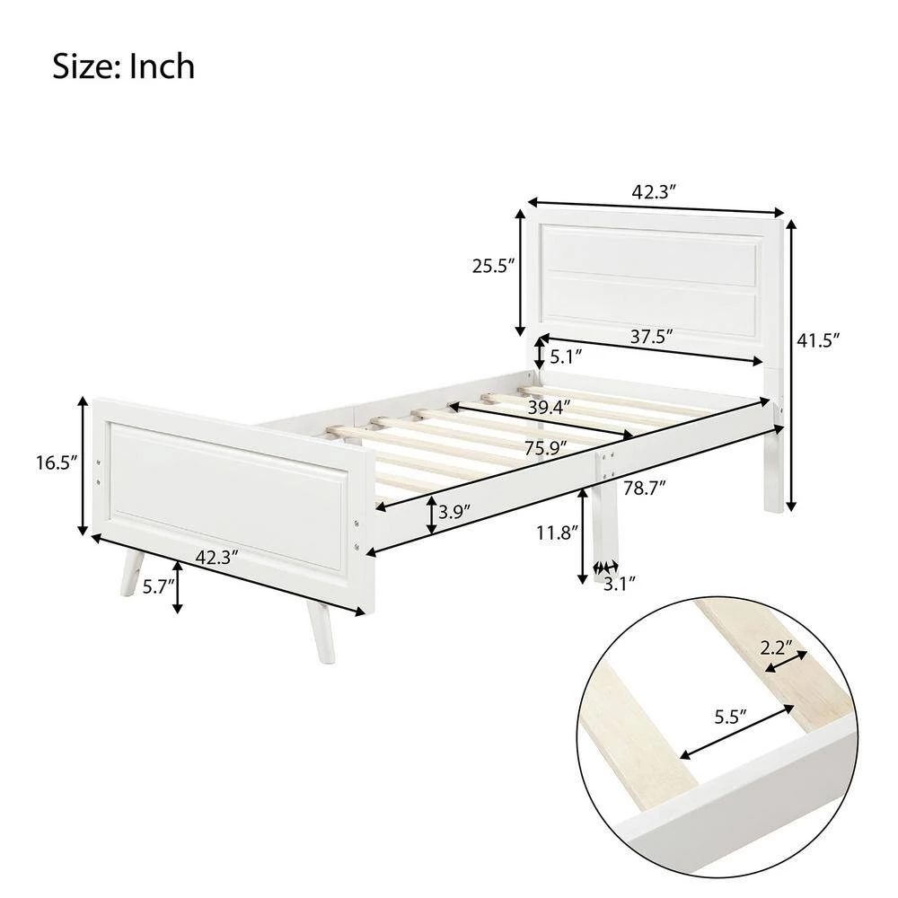 This Wood Platform Bed with Headboard and Footboard is a minimalist, stylish bed base that works well with a variety of decorating styles and makes it easy for you to beautify the look of your bedroom. The bed contains an integrated headboard. It fits most Twin-size mattresses and does not require a box spring. This bed frame is an excellent addition to any bedroom, do not miss the chance take it home.